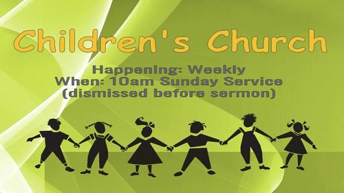 Please join us for children's church during our 10a.m. church service. The children will go to church service with their parents and be dismissed after the praise choruses (before the adult sermon).